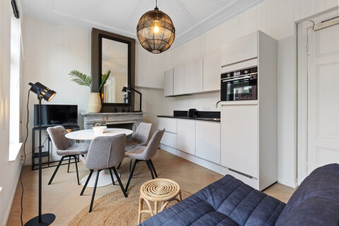 This brand-new, renovated (2024) apartment is a comfortable, modern interior and high-quality stylish landingspot