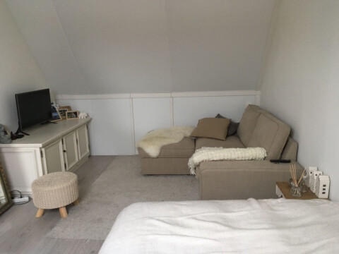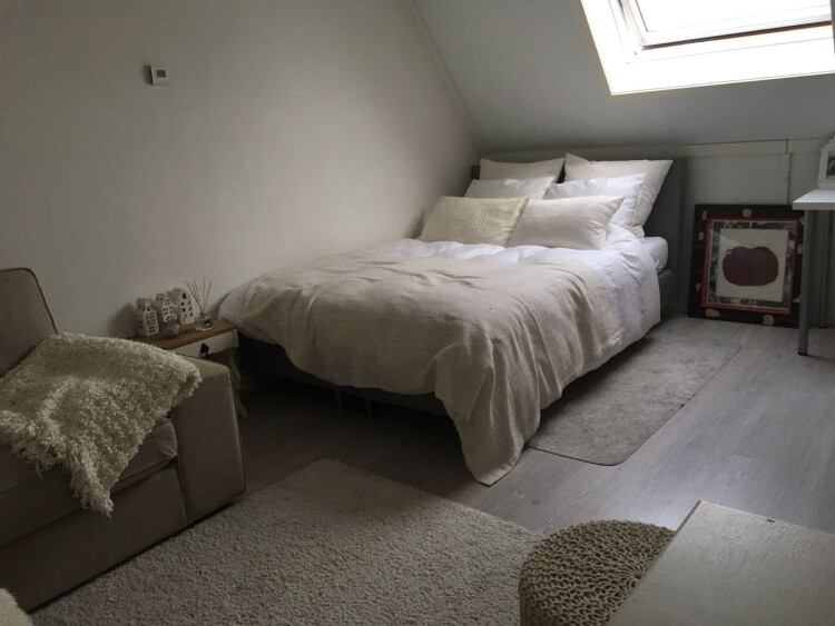 Alles in het huis is nieuw, inclusief de keuken en badkamer. Het betreft een kamer van 16 vierkante meter op de zolder. De hele verdieping is dus voor jou alleen. De kamer is €399 inclusief. Het huis is voorzien van een wasmachine, vaatwasser en een schuur om je fiets te stallen en alle standaard dingen zoals pannen en servies en bestek. Er is een gezamenlijke woonkamer en keuken van 55 vierkante meter in totaal. En we hebben een tuin van 45 vierkante meter. Het huis is gelegen aan de rand van het centrum. Het is op 7 minuten loopafstand van het station en op 12 minuten loopafstand naar de stad.