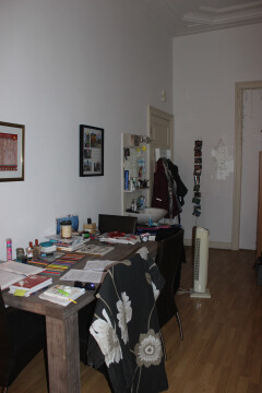 De kamer grenst aan de afgesloten achtertuin die bereikbaar is via de openslaande tuindeuren en waar ook de fietsen gestald worden.