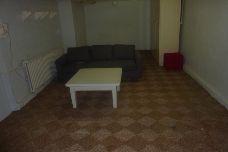 Te huur per direct groot souterrain kamer is 8 lang 4 breed het is een grote kamer, daar naast keuken.
